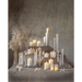 Vahasta valmistettu LED-pöytäkynttilä uritetulla pinnalla ja aidon näköisellä Flamme-liekillä. Sisäkäyttöön.