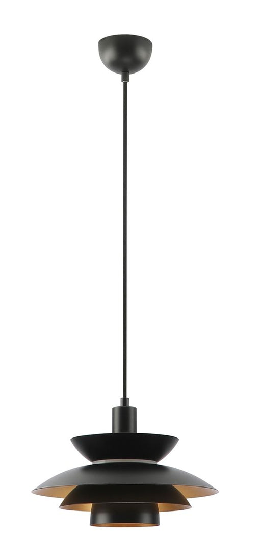 No reviewsModerni laser leikattu metallinen musta riippuvalaisin, sisäpuoli maalattu kulta. Kattokoukkukiinnitys, mukana valaisinpistotulppa Kanta: E27 Mater...